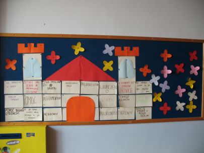 V januarju smo se pri unicefovem krožku pogovarjali o humanosti. Naš pano smo opremili z gradom in rožicami, ki govorijo o humanosti.