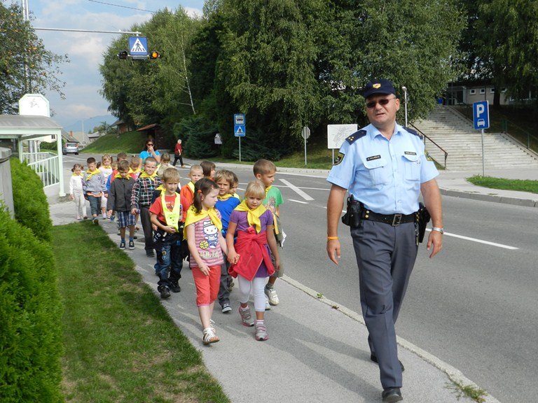 OBISKAL NAS JE POLICIST. Z NJIM SMO SE SPREHODILI PO BLJIŽNJI OKOLICI ŠOLE.