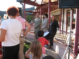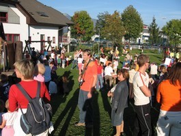 Zbrali smo se na našem igrišču za vrtcem, kjer so nam ob pridobitvi novih igral namenili nekaj besed ravnateljica, vodja vrtca in župan občine Šenčur. |