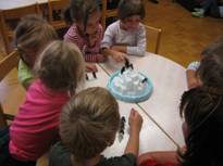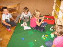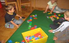 Skupaj se igramo in sestavljamo dooolgo kačo. |