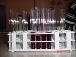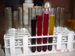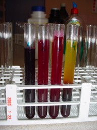 | Prvotne eksperimente smo izvajali v epruvetah. Kasneje smo se iz ekoloških razlogov odločili za izvajanje eksperimentov z zelo majhnimi količinami reagensov na folijah. | ||