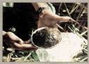 sliced open by harvesters. This thick sap is then collected in bricks or