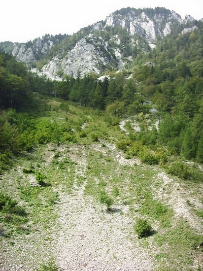 bolj strme in ozke gorske doline ali grape v širšo in položnejšo