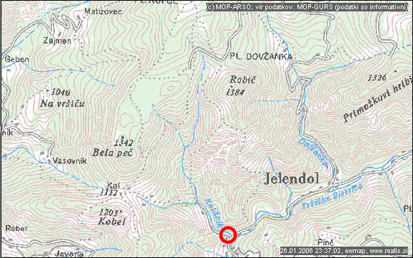 Bistrico se izliva v Dolini na 760 nadmorske višine. |