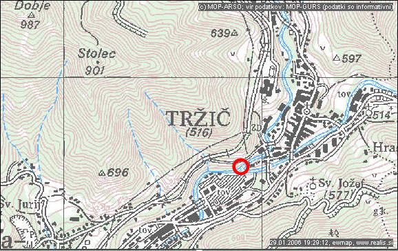 Tržiško Bistrico pa se izliva v Tržiču, na nadmorski višini 503 m. |
