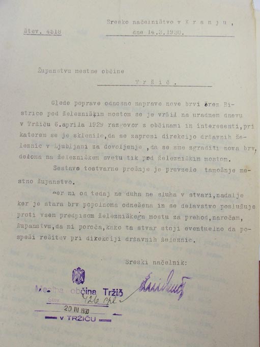 Po vojni so popravili cesto Tržič – Jelendol, ter mostove da