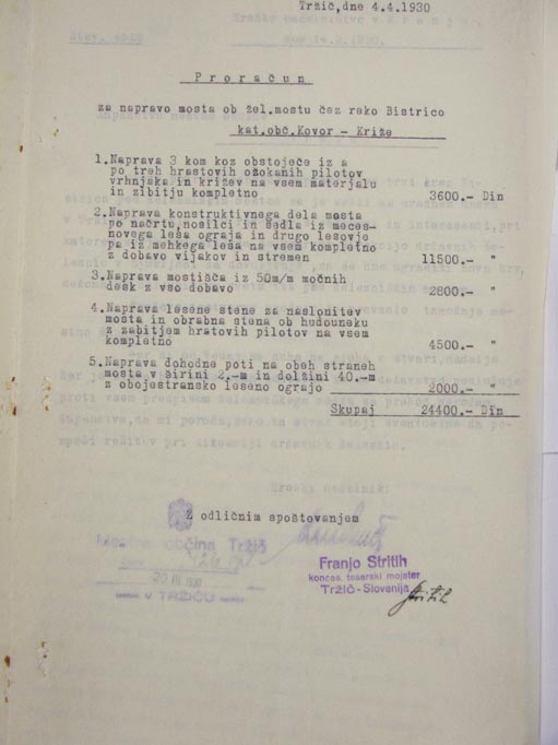 pokrova kamna v Bistrico. Pred prihodom Nemcev, leta 1941, je
