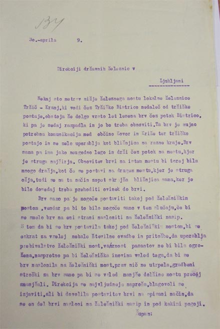1904 je bil za prehod čez Bistrico pritrjen ob strani mostu. Ta
