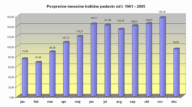 primerjava povprečnih mesečnih temperatur z obdobjem 1950 - 1960 (glej spodnji