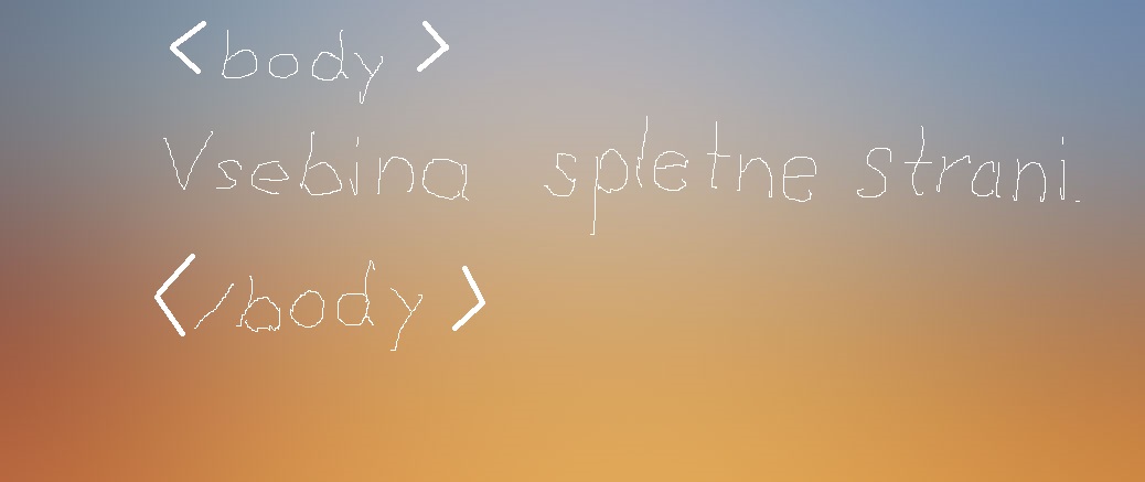 Med značkama v telesu napišemo besedilo, naslove, vstavimo slike,...