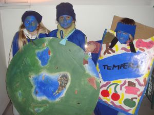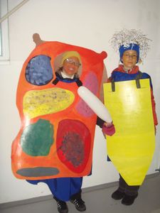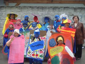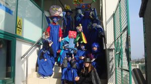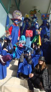Slavni šolski pripomočki OŠ Ig se radi zabavajo, igrajo, nagajajo, ..., pomagajo in sodelujejo na pustnem karnevalu.