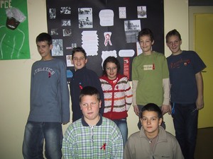Predstavili smo tudi tragedijo otrok v podsaharski Afriki, ki so okuženi z virusom HIV. Pri izbirnem predmetu Vzgoja za medije pa smo učenci naredili velik plakat o aidsu. Razložili smo tudi, simbol česa je rdeči trak, ki ga v znak zaveščenosti o tej bolezni in v znak solidarnosti z obolelimi na ta dan nosimo. Te rdeče trakove smo dobili tudi vsi učenci.
