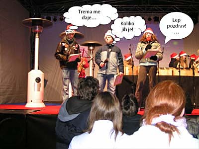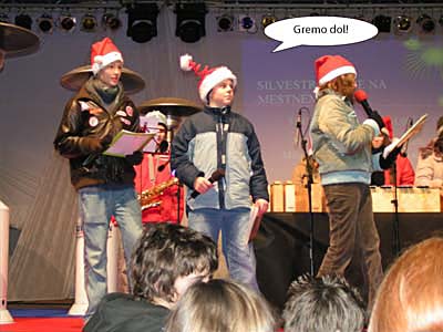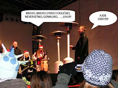 Nastop Orffovcev22.12.2005 22. december je bil poseben dan. Orffovce in člane novinarskega krožka je doletela ta čast, da smo odprli decembrske prireditve na Prešernovem trgu v Ljubljani. In kako je bilo? No, pa si poglejte naš strip! Liza, Klemen, Sebastjan, novinarski krožek, PS