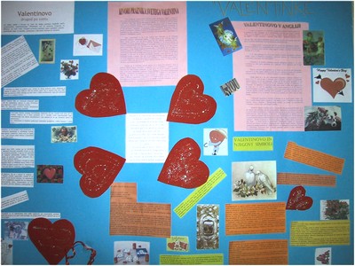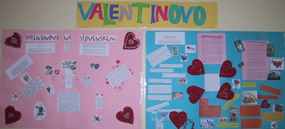 Bodi moj Valentin14.2.2006 Tvoji kodri, oči in glava Ti junak, si jaz prismoda, Ja, tudi mi smo podlegli romantičnemu Valentinu… Predmetno stopnjo krasi ogromen plakat, kjer si lahko preberemo skoraj vse, kar je tako ali drugače povezano s tem ljubezenskem heroju, ki je umrl nič kaj romantično.