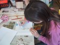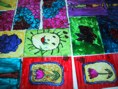 Nato so prišla na vrsto stekla. Stekla smo najprej umili in jih zbrisali do suhega. Nekateri smo si pripravili motiv, ki smo ga položili pod steklo. S konturo smo narisali obrobe. Kontura se je morala dobro posušiti. Pričeli smo z barvanjem ploskev. Pri tem smo morali biti kar natančni. Barva na vseh treh stekelcih se je morala dobro posušiti.