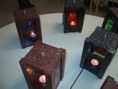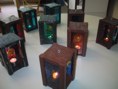 Stekla smo z lepilno pištolo pritrdili v leseno ogrodje laterne. Na eni strani smo pustili odprtino za namestitev svečke. V zgornjo leseno ploščico smo privili kavljast vijak, da bomo laterno lahko obesili na izbrano mesto.