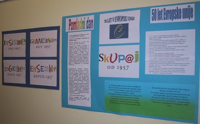 Pomladni danŠolsko leto:2006/07 DAN EVROPE Ob 50-letnici EU smo na šoli še posebej počastili ta praznik. Z učenci smo pripravili predstavitve EU, se pogovarjali in izmenjavali svoje poglede na skupno bivanje, predstavili različnost narodov, počastili prihod pomladi s koncertom Kličemo pomlad in sodelovali v klepetalnici z OŠ Valentina Vodnika. V projektu so sodelovali: Dušan Čerček, Petar Lazarevič, Lorieta Pečoler, Ivana Madronič Čelič in učenci izbirnega predmeta UBE, MME.