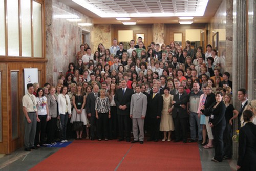Nato smo se zbrali, da bi se slikali, a še prej smo morali počakati prav posebnega gosta… Z obiskom nas je počastil sam predsednik Republike Slovenije dr. Danilo T ü rk, ki si je kljub natrpanemu urniku vzel čas za nas, se z nami slikal in poklepetal.