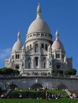 Bazilika Sacré Coeur je pariška rimsko katoliška cerkev in znamenitost, ki krasi grič Montmartre, najvišjo točko Pariza. Bazilika Sacré Coeur, posvečena Svetemu srcu, je vidna z vsega Pariza. Grič Montmartre se v severnem delu Pariza vzpenja 129 metrov visoko. Ime pomeni gora mučenikov (mont des martrys), ker je to kraj mučeništva svetega Denisa, prvega pariškega škofa (pozno tretje stoletje) in njegovih spremljevalcev. Na ta kraj je prišlo veliko svetnikov (sveta Klotilda, sveti Bernard, sveta Ivana Orleanska, …) in tudi sveti Ignacij Lojolski ter sveti François-Xavier katera sta leta 1534 tukaj ustanovila Societas Iesu oz. Družbo Jezusovo (jezuiti). Velika benediktinska opatija je zasedla celoten grič do francoske revolucije, ko so bile nune obglavljene in je opatija razpadla. |