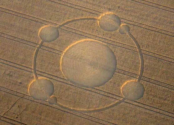 ...... Zunanji obroč je imel premera 32 metrov (približno 1 m debeline), osrednji krog je imel 8 metrov premera; žito je bilo poležano v nasprotni smeri urinega kazalca, vse žito je bilo nepoškodovano (preden so ga obiskovalci pohodili); meja med pšenico in ječmenom je potekala neposredno po sredini kroga. Erin iz avstralske transmisijske skupine v Brisbanu je sugerirala, da ima krog obliko zodiakalnega znaka sonca dejansko se je pojavil 24 ur pred poletnim solsticijem.