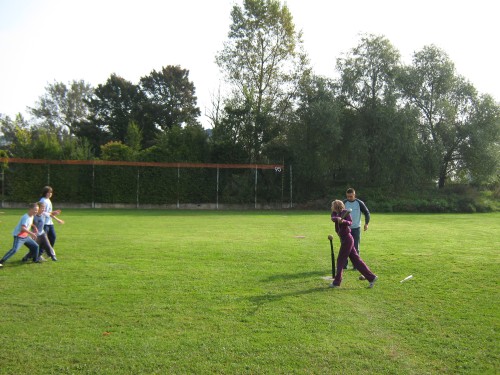 Vzeli smo kij. V paru je eden metal žogico, drugi pa