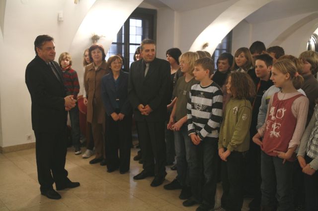 V mestni hiši naše prestolnice je vse sodelujoče prijazno sprejel in nagovoril župan gospod Zoran Janković. Da  pa je praznični december zares deloval praznično, smo bili v mestni hiši postreženi in obdarovani s kapami in z majicami mesta Ljubljana ter vožnjo na ljubljanski grad  z vzpenjačo. Seveda smo se ta dan tudi odzvali vabilu gospoda Jankovića in se udeležili  popoldanske otvoritve okrašene Ljubljane in prižiga novoletnih lučk.