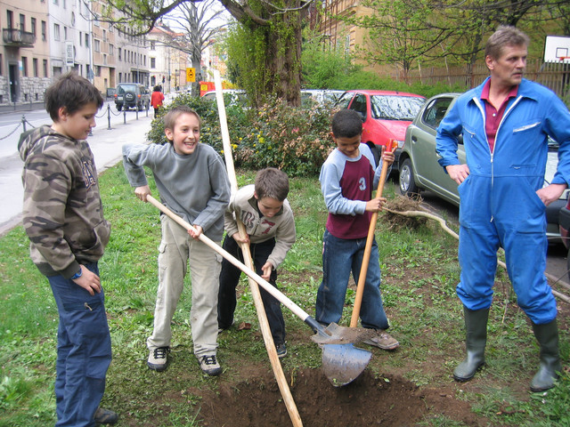naših učencev in širše družbe. Sajenje dreves je potekalo v