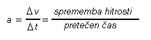 je razmerje med spremembo hitrosti in pretečenim časom.