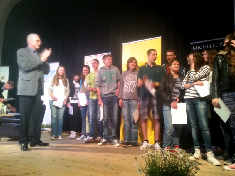 V ponedeljek, 12. maja so se zlati bralci naše šole srečali s pisateljem Slavkom Preglom, ki jim je čestital za devetletno branje in jim v imenu Bralne značke Slovenije in OŠ Rodica podelil priznanja in pohvale.