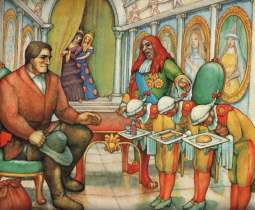 7. Kako je cesar sprva pogostil Krpana? Velel je prinesti polič vina, kruha in sira. Velel je prirediti celo pojedino. Velel je na ražnju speči celega kopuna. Velel je Krpanu postreči s kavo in Sacher torto.