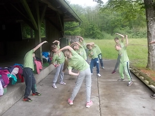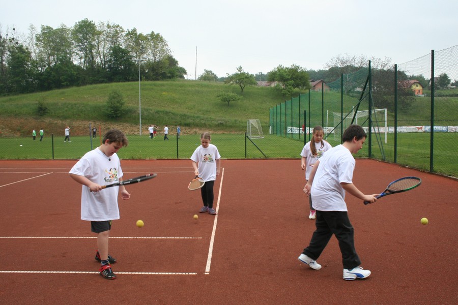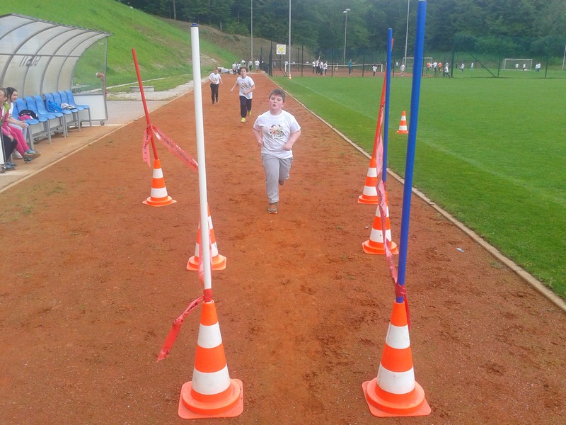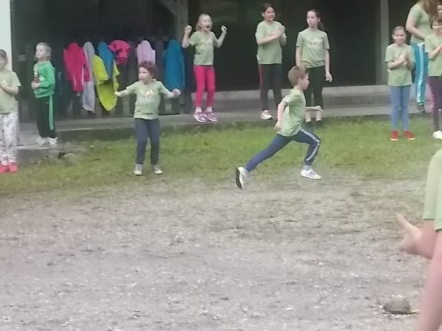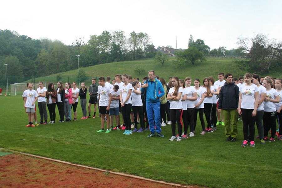 Ob 8.00 smo se zbrali v avli šole, kjer smo razdelili promocijske majčke in zapestnice. Nato smo se napotili proti lovskemu domu v Muže. Tam smo izvedli kros. Učenci prve triade so tekli 300 m, učenci druge triade pa 600 m. Po vrnitvi v šolo smo izvedli še skok v daljino in met žogice.