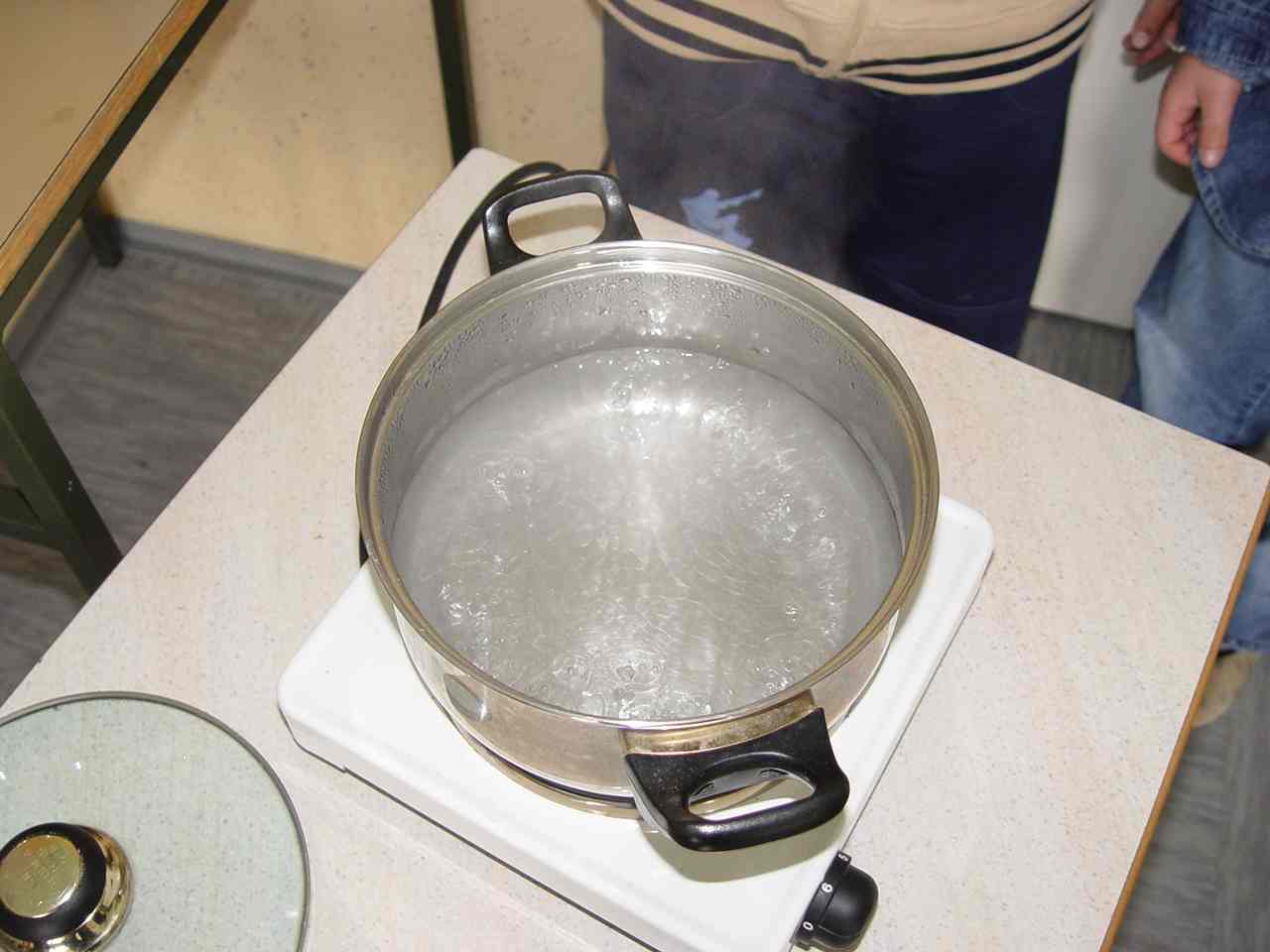 posodi, so vodo segreli do vrelišča v 8 minutah. Ko so izmerili količino vode v posodi, je je bilo enako kot na začetku – 1 liter. Učenci, ki so segrevali vodo v odkriti posodi, so vodo segrevali 18 minut. Količina izmerjene vode po tem je bila 8,5 dl, oz. 850 ml. Ugotovili so tudi, da voda ni zavrela enako močno kot pri prvi skupini.