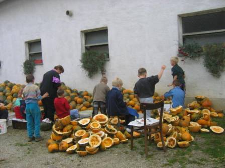 V četrtek, 29. 9. 2005, smo imeli naravoslovni dan. Zbrali smo se v učilnici. Tam smo se namalicali. Nato smo se odpravili v Kadrence. Po prihodu na kmetijo Kovačec smo si nadeli predpasnike. Dobili smo posodo za semena. Poiskali smo si prostor za delo in začeli jemati semena iz razpolovljenih buč. Gospodar je že pred našim prihodom buče razpolovil. Semena smo skrbno dajali v posodo. Prazne polovice so pogumnejši in močnejši učenci vozili kravam za hrano. V začetku nam je bilo delo zanimivo. Hitro pa smo se srečali tudi s težavami. Sedenje pri miru in ponavljanje istih gibov z rokami nas je utrudilo. Z opravljenim delom smo bili vseeno zadovoljni.