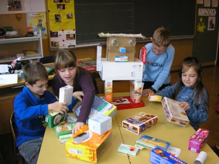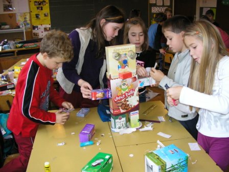 Iz odpadnega kartona in posušenih listov so učenci po skupinah izdelali sadna drevesa ter jih razstavili v razredu in na razstavi sadja v Vitomarcih.