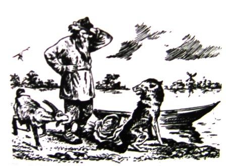 Neki mož je moral prepeljati čez reko volka, kozo in zeljnato glavo. V čolnu je bilo prostora samo za moža, ob njem pa še za kozo, zelje ali volka. Toda če pusti volka s kozo, bo volk kozo pojedel; če pusti kozo z zeljem, bo koza pojedla zelje; če je prisotenmož, pa seveda ne bo nihče nikogar ali ničesar pojedel. Možu se je vendarle posrečilo prepeljati čez reko volka, kozo in zelje.