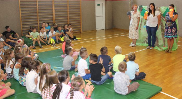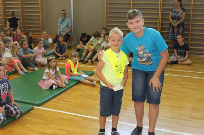 Najprej sta se predstavila Lili in Bine, ki sta preko lutkovne igre povedala, kaj vse se njima je pripetilo, ko sta letela v šolo. Nato so prvošolci postali pravi šolarji – dobili so priznanje, rumeno rutico in svojega petošolca, ki bom med šolskim letom večkrat pogledal, če se prvošolec v šoli počuti dobro. Nato so prvošolci odšli v razred, kjer jih je pričakala delavnice ter sladko presenečenje – TORTAAAA. Po malici so prvošolci, nasmejani in dobre volje, s svojimi starši odšli domov. Vsem prvošolcem želimo leto polno novih spoznanj in znanj. Katja Vezjak |