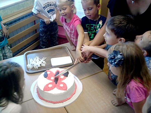 Seveda na prvi šolski dan ne sme manjkati torta – metuljček.