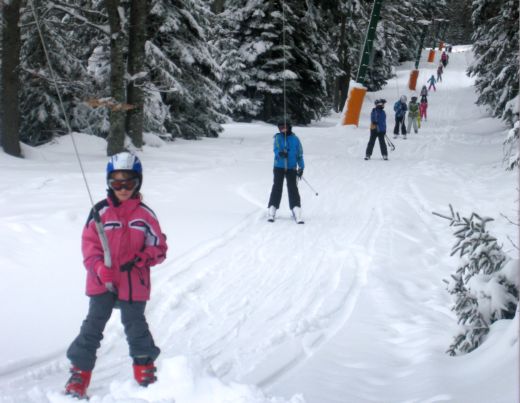 smučarji, ki imajo že več smučarskega znanja, so se spuščali po malo zahtevnejši progi.