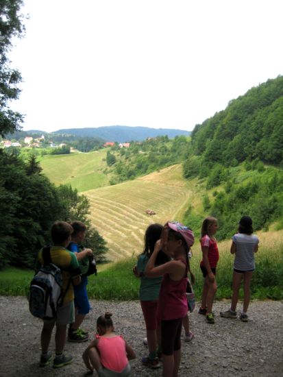| Sobotno jutro in mi gremo v šolo. V bistvu, mimo šole. Še en dogodek iz našega letnega delovnega načrta bomo obkljukali. Učenci s starši in učiteljice jo mahnemo navkreber po gozdni cesti proti vrhu. |