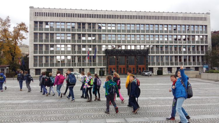 se ustavili šele pred Narodno galerijo. Tu so nas prijazno sprejeli, razdelili