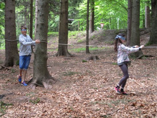 zavezanimi očmi smo namreč morali ob vrvi prehoditi precej zahtevno pot.