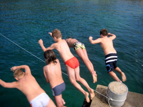 se namestili. Že prvi dan so nas preizkusili v plavanju in nas