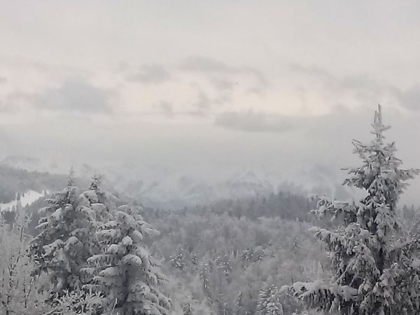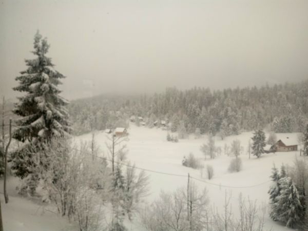 spoznanje boljše. Novo jutro, mrzlo in v črno - beli tehniki. Pa veliko sivine. Ni videti, da nas bo sonce prišlo kaj pogledat. Morda malce, za hip, da se tam daleč zadaj nekaj izriše? Obrisi, ki dajejo le slutiti ... ![]() Tudi razpoloženje pred smučanjem se izboljšuje. Čaka nas nov dan. Alpsko smučanje, nordijsko smučanje in živali v domu. ![]() ![]() Naša Kleopatra pa se je zbudila ... in odšla domov. Pogrešali jo bomo :(