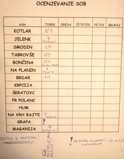 umivanje, telovadba, zajtrk in pospravljanje sob. Tokrat so ocene za