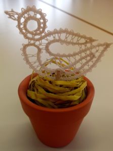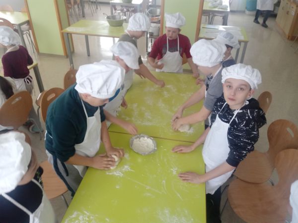 Sneži in močno piha. Še dobro, da dopoldne ni na urniku smučanja. Danes si bomo sami skuhali kosilo in se naučili še nekaj zanimivega. ![]() Delali smo idrijske žlikrofe ... ... in klekljali idrijske čipke. ![]() Nismo se sicer še lotili tistih pravih mojstrovin, je pa začetek zelo obetaven. Vsak si je sklekljal kitico, ki je eden od osnovnih vozlov idrijske čipke. ![]() Smučanje