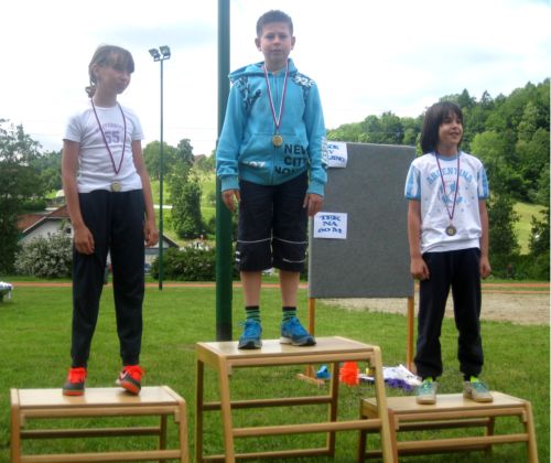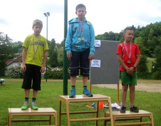 štafete, ki so jo za našo šolo osvojili prvošolci. Ob tem so z zanosom zapeli