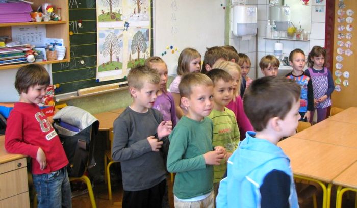 Že bo prihodu v razred so jim šolarji zapeli pesem Metuljček cekinček in