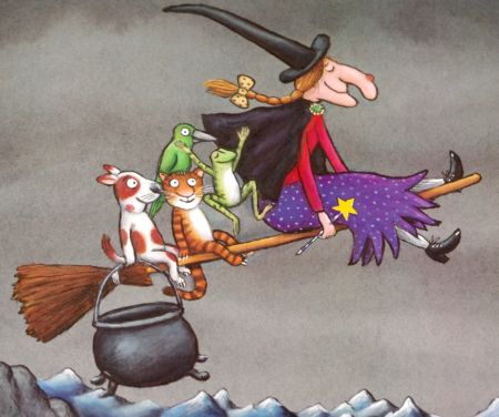 Knjižničarka je za začetek prebrala pravljico Bi se gnetli na tej metli?