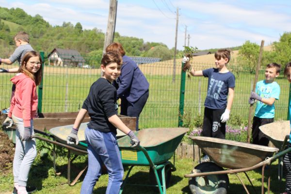 grabljati travne površine, pobirali vejice. Okopavali in pleli smo gredice in