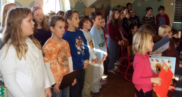 POJEMO HIMNO! UČENCI SO LEPO BRALI IN PLESALKE SO DOBRO PLESALE. LEPO JE